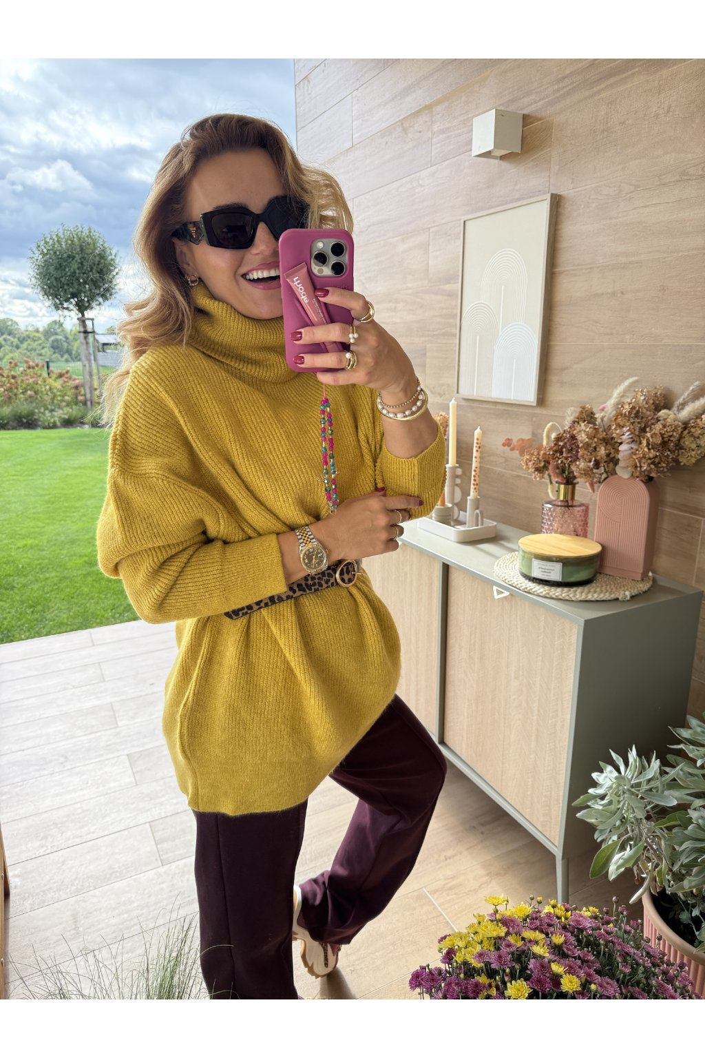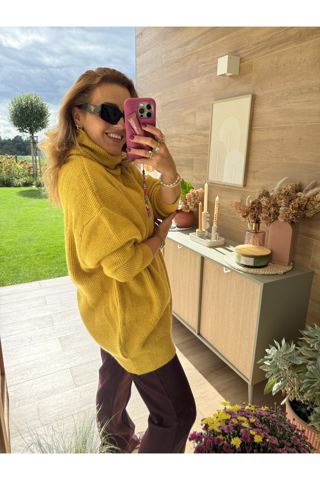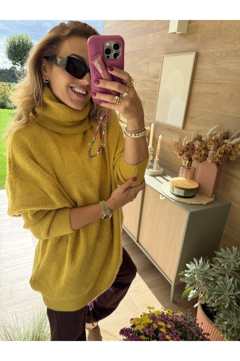 Zamilujte se do ležérní elegance! Tento měkoučký oversize svetr s rolákem je ideální volbou pro chladné dny – zahřeje, ale přitom vypadá stylově. Snadno ho zkombinujete s džínami, legínami i elegantními kalhotami. Sedne od S až do menší velikosti XL.