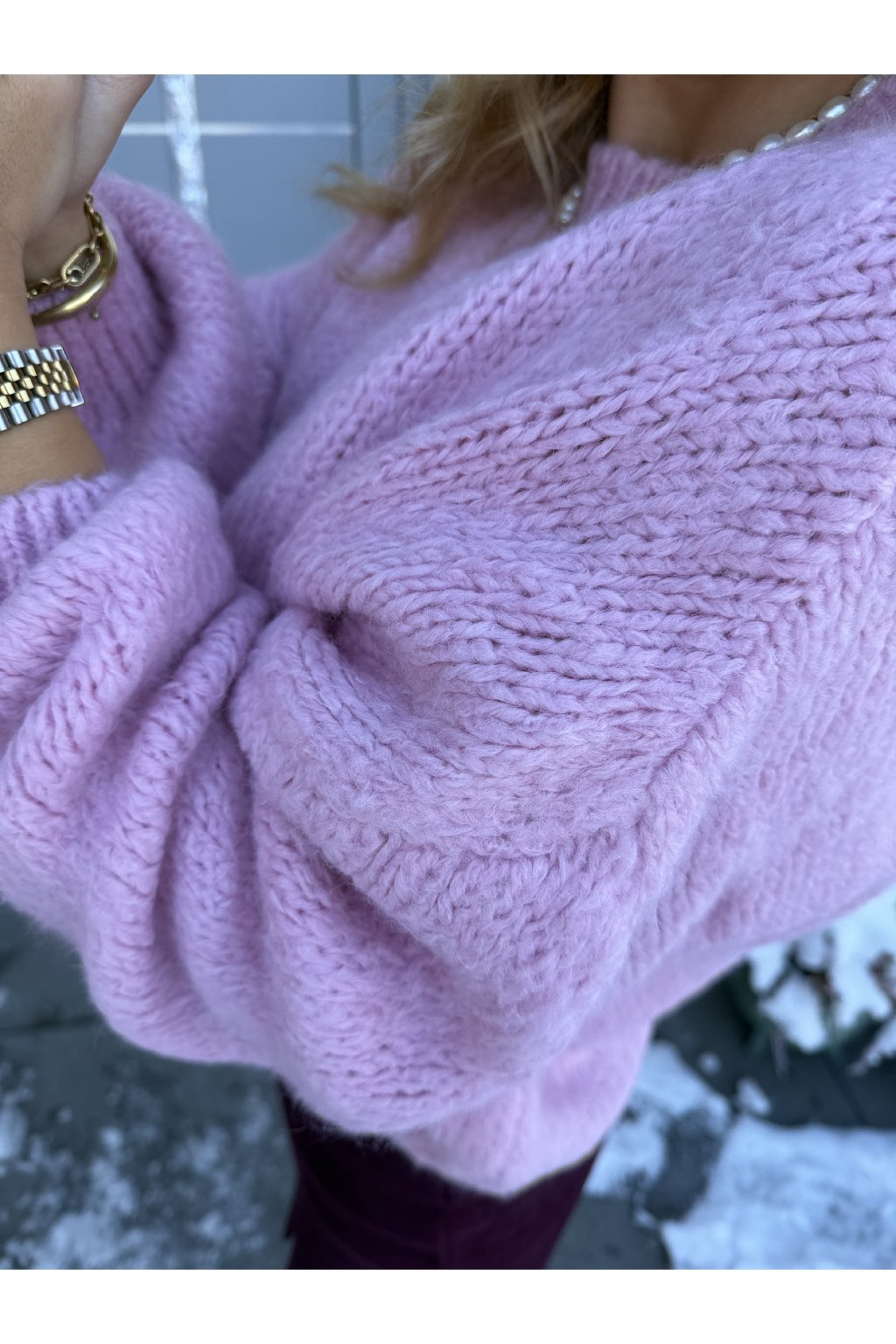 Hřejivý a extra příjemný oversized svetr s jemnou pleteninou a balónovými rukávy. Dokonale pohodlný kousek na zimu, který snadno zkombinujete ke kalhotám i sukni. Díky oversize střihu sedne od S až do L.