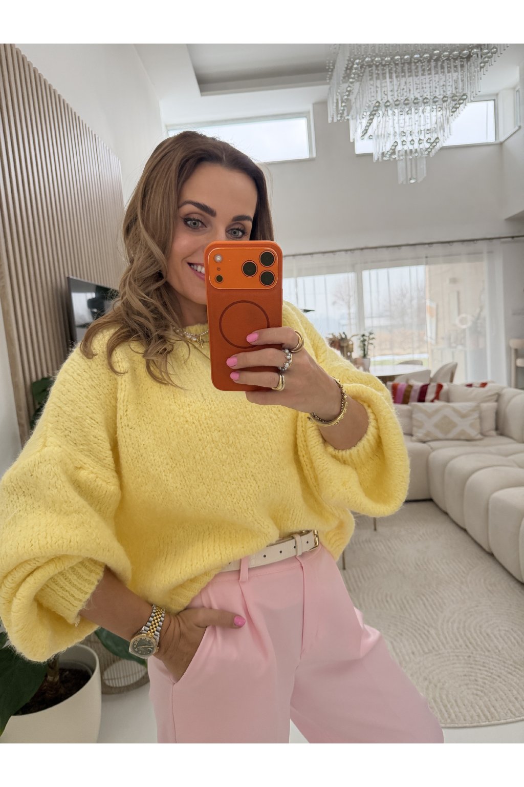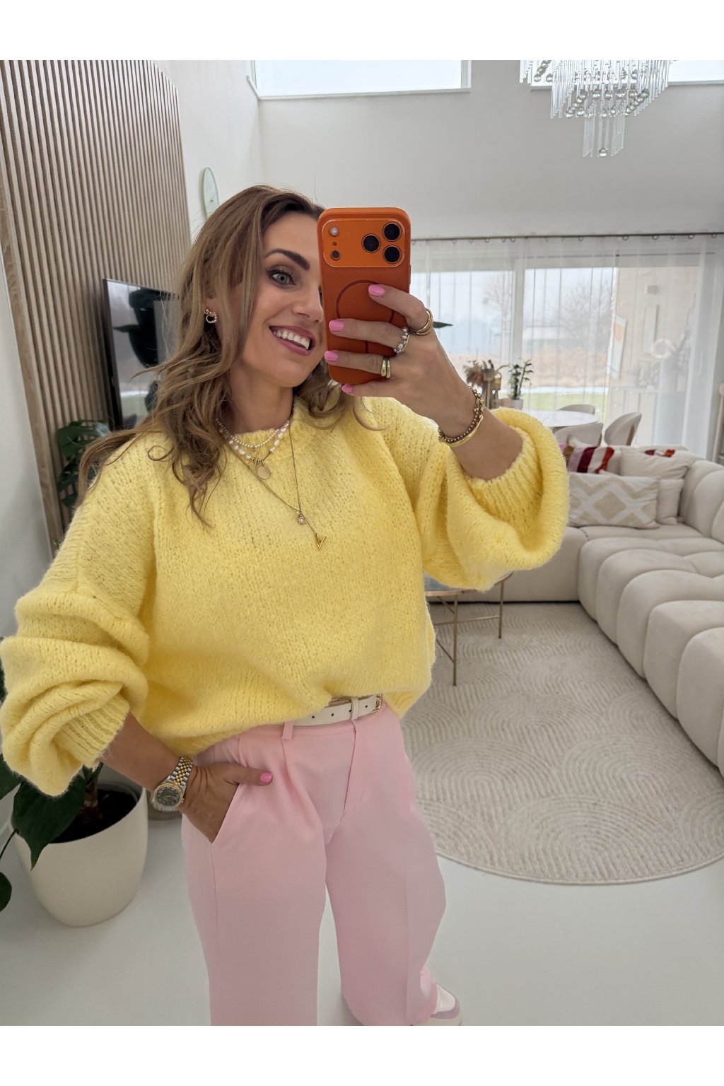 Hebký svetr PURE TOUCH v nádherných svěžích barvách, které rozzáří každý outfit. Díky příměsi vlny je příjemně hřejivý, ale zároveň lehký a komfortní na nošení. Dominantou jsou balónové nadýchané rukávy, které dodávají svetru moderní a ženský vzhled. Ideální k džínám, sukním i elegantním kalhotám.