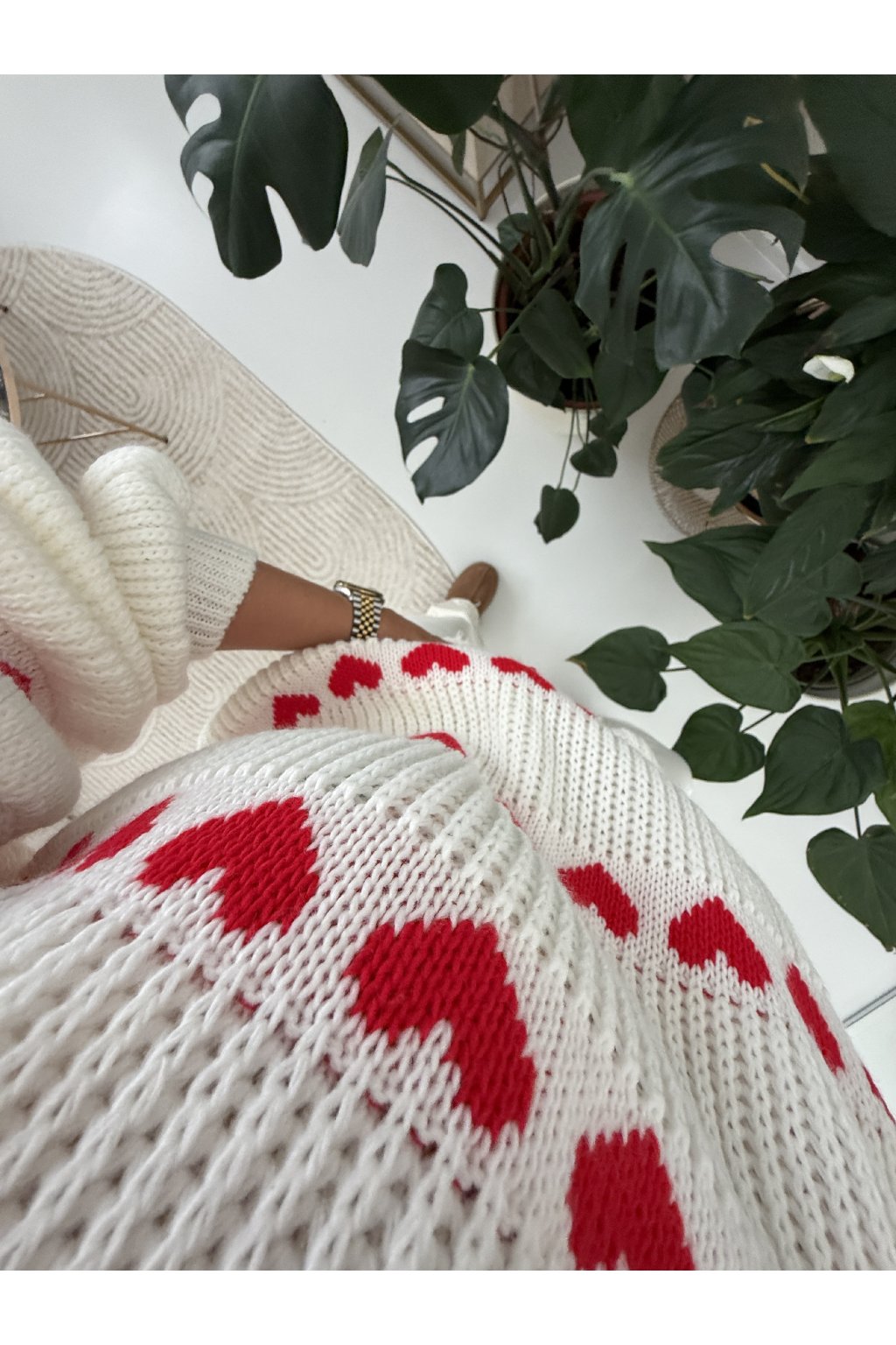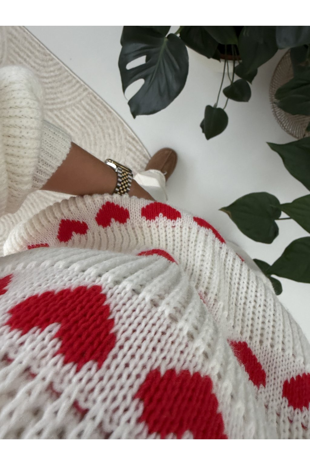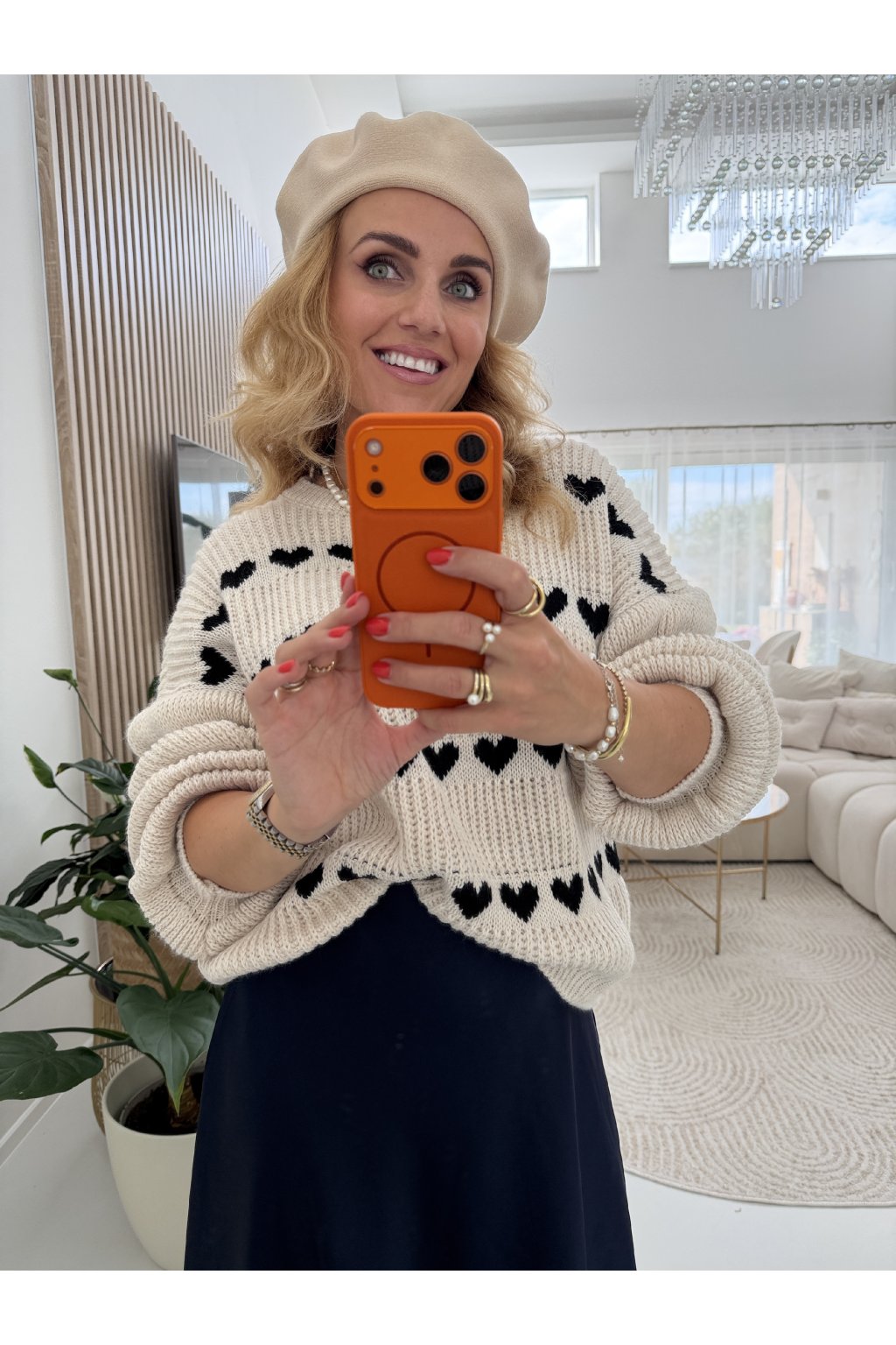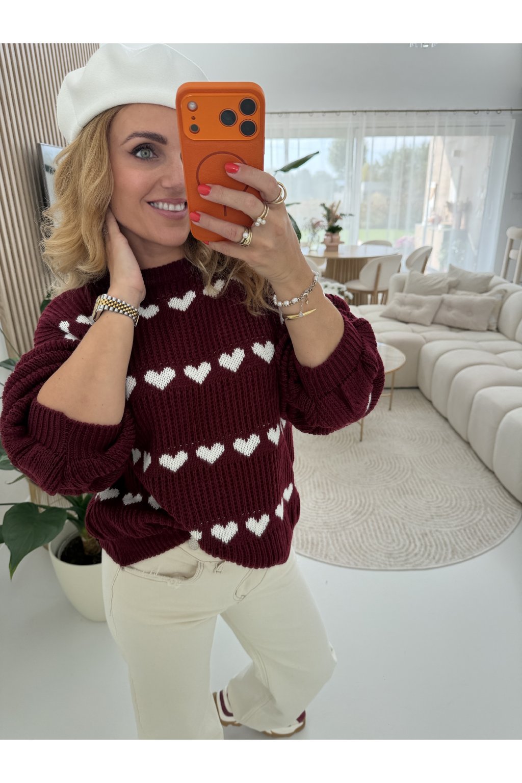 Roztomilý, hřejivý a maximálně stylový! Tento pletený svetr se vzorem srdíček si tě získá na první pohled. Má balónové rukávy s jemným žebrováním a volnější střih, který působí ležérně, ale stále žensky. Je vyroben z měkkého, příjemného materiálu, který nekouše a krásně drží tvar. Ideální k džínům, sukni nebo koženkovým kalhotám – zkrátka must-have kousek pro podzim a zimu.