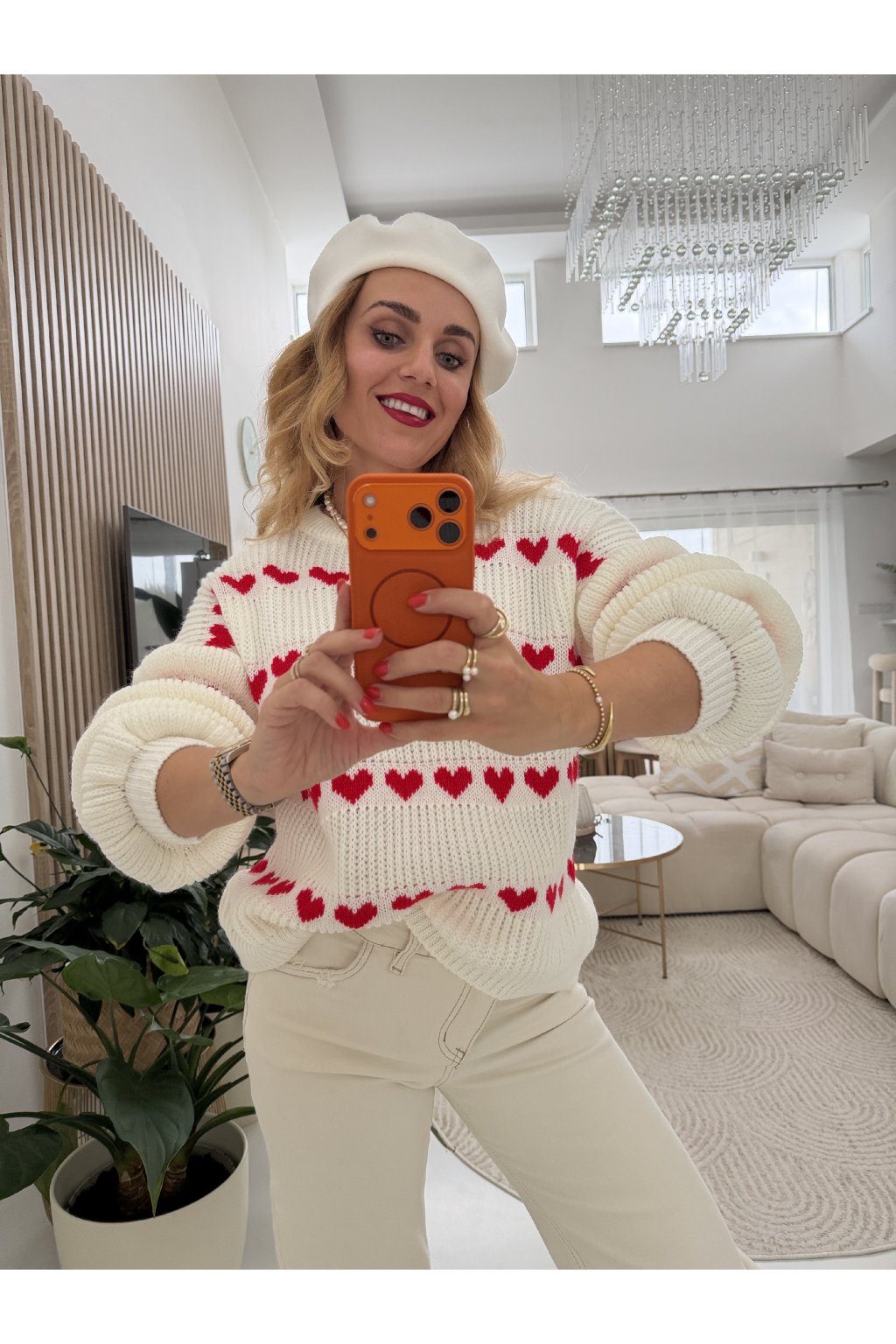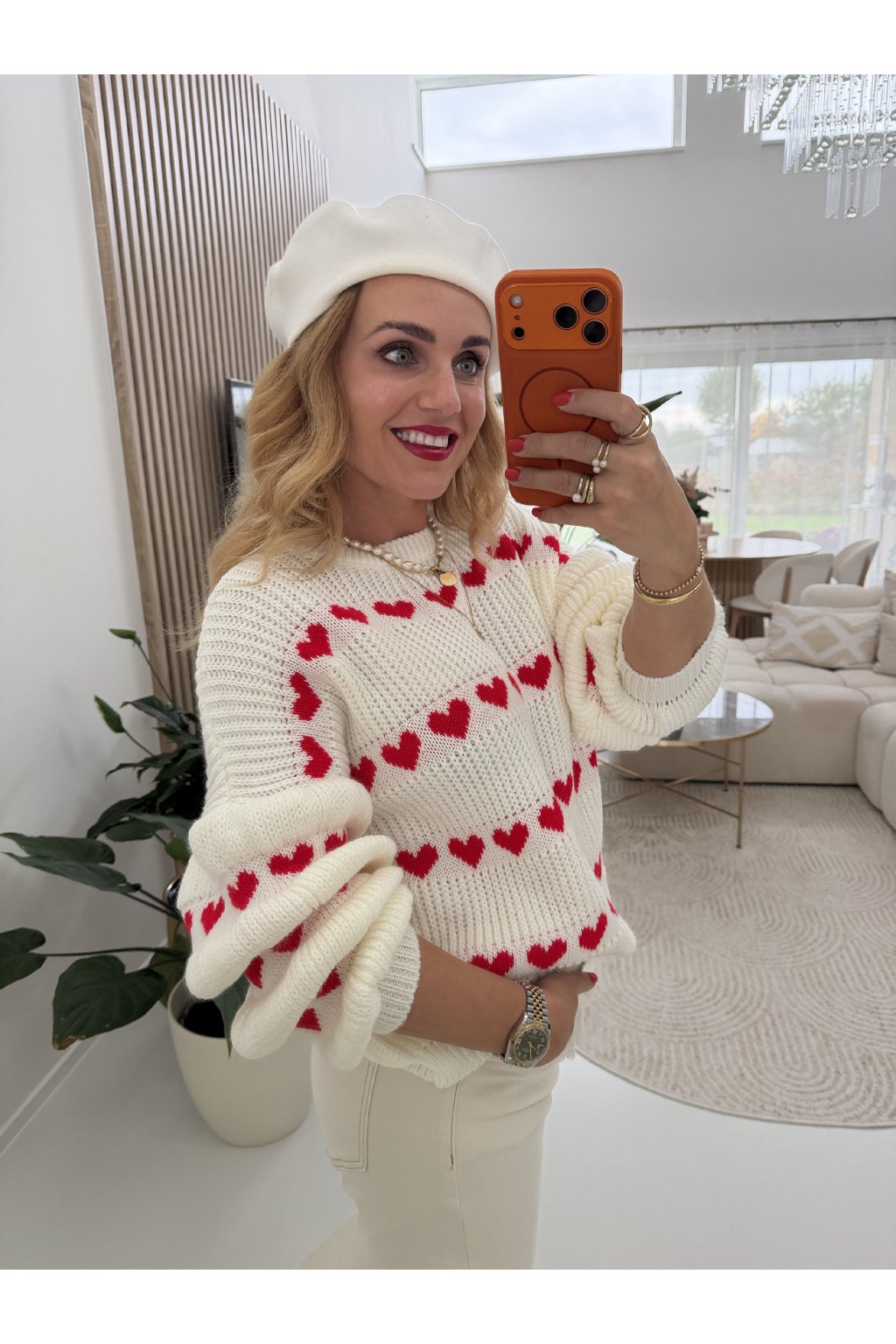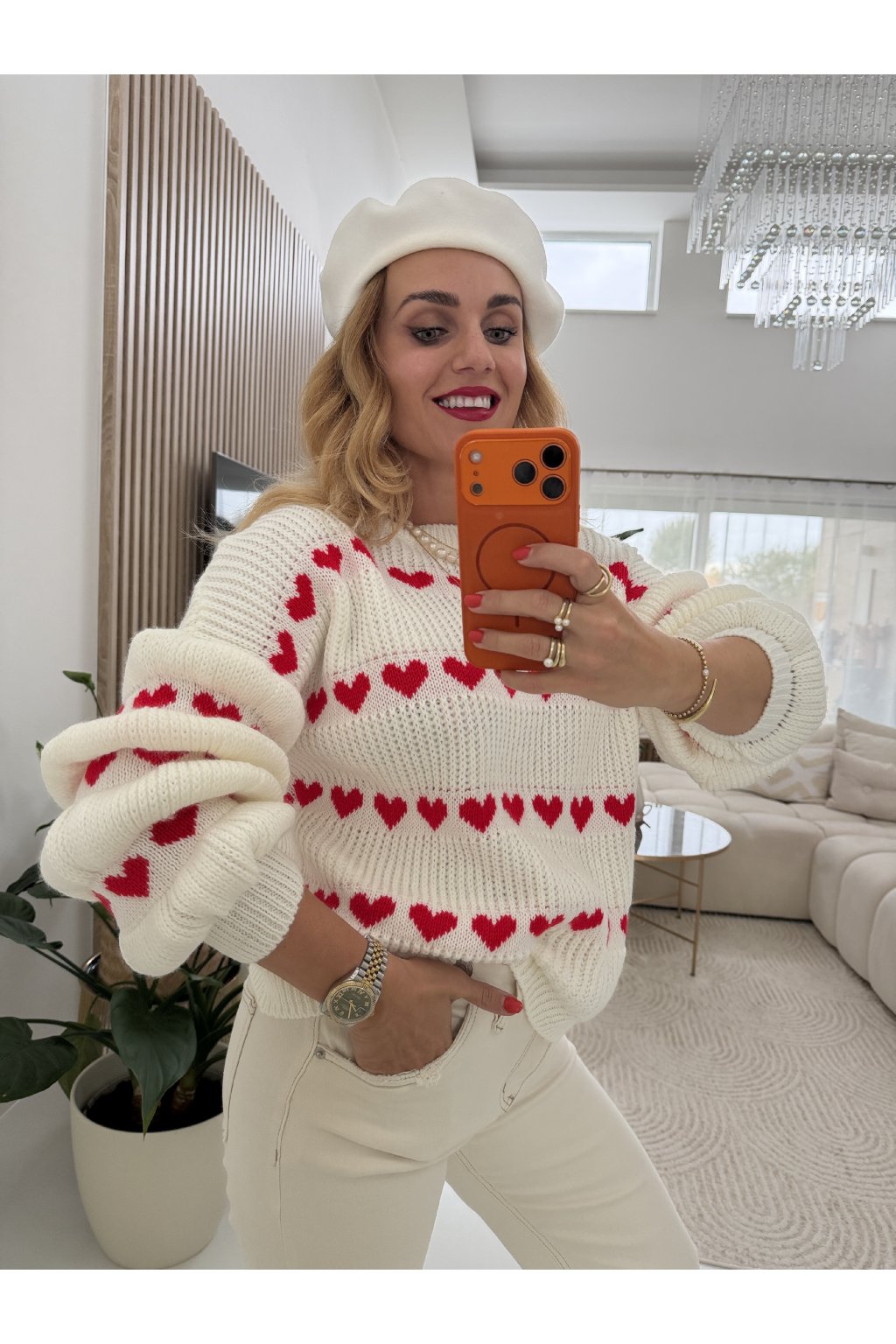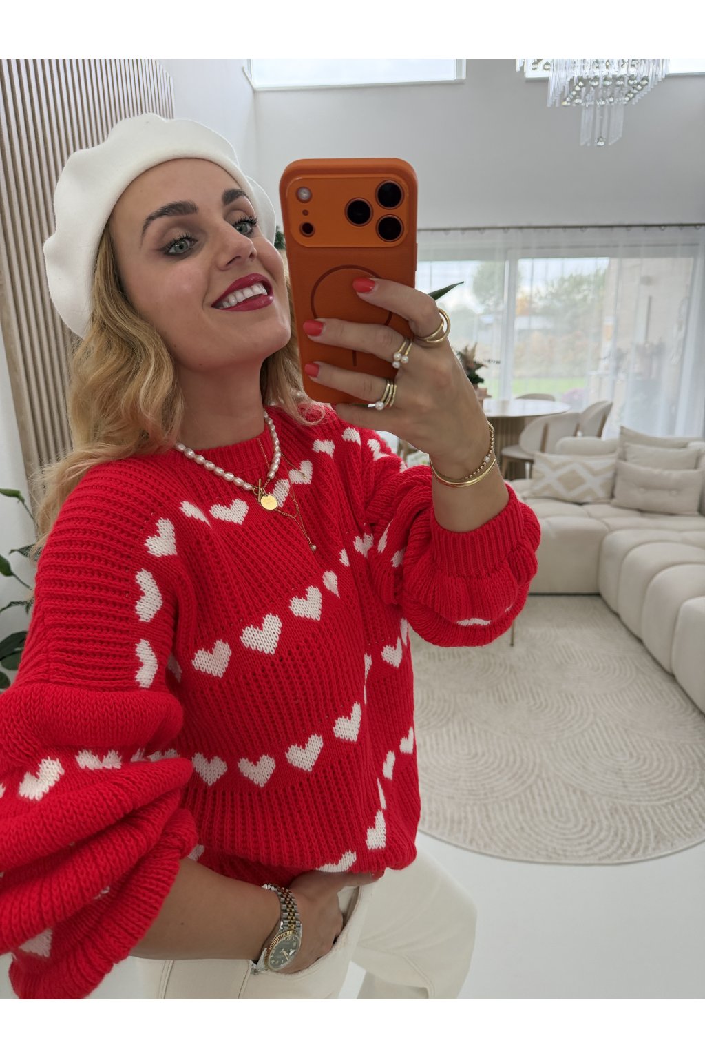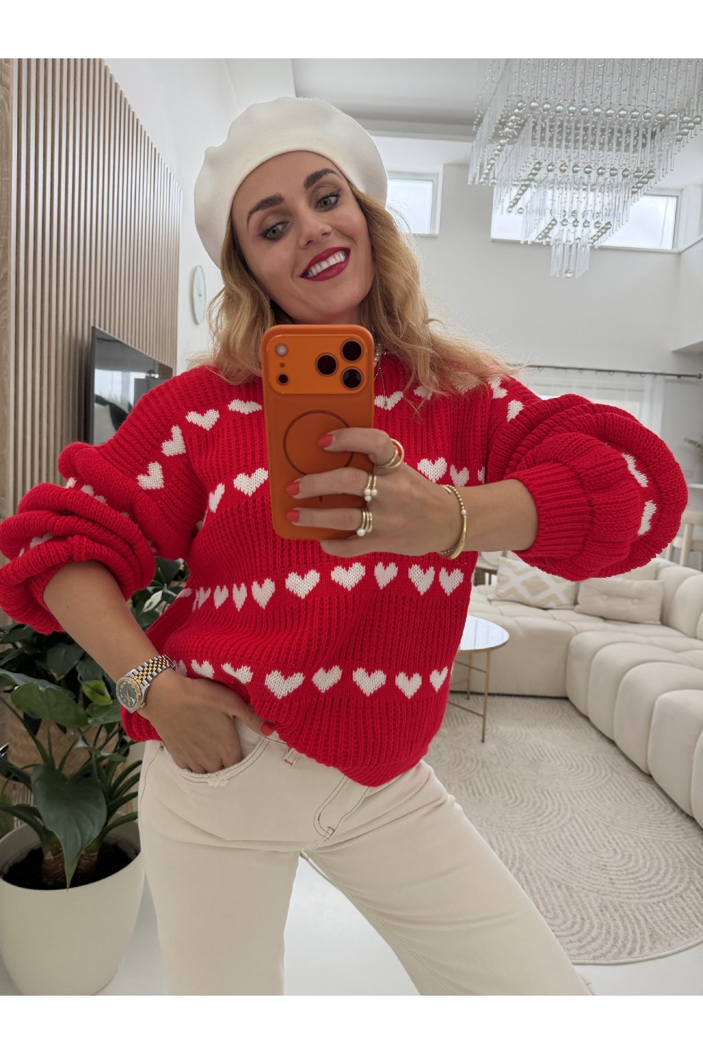 Svetr se srdíčky a balónovými rukávy GIVE ME YOUR HEART❤️