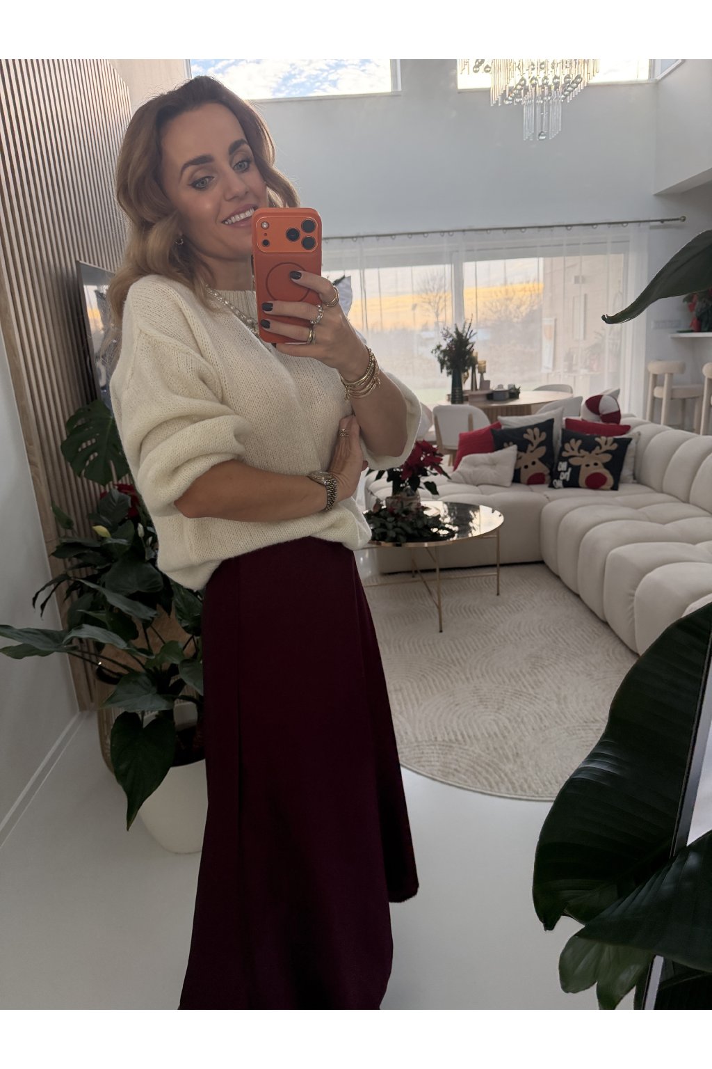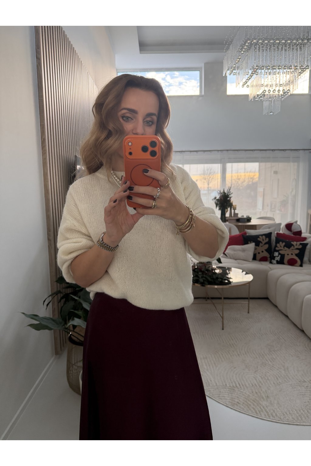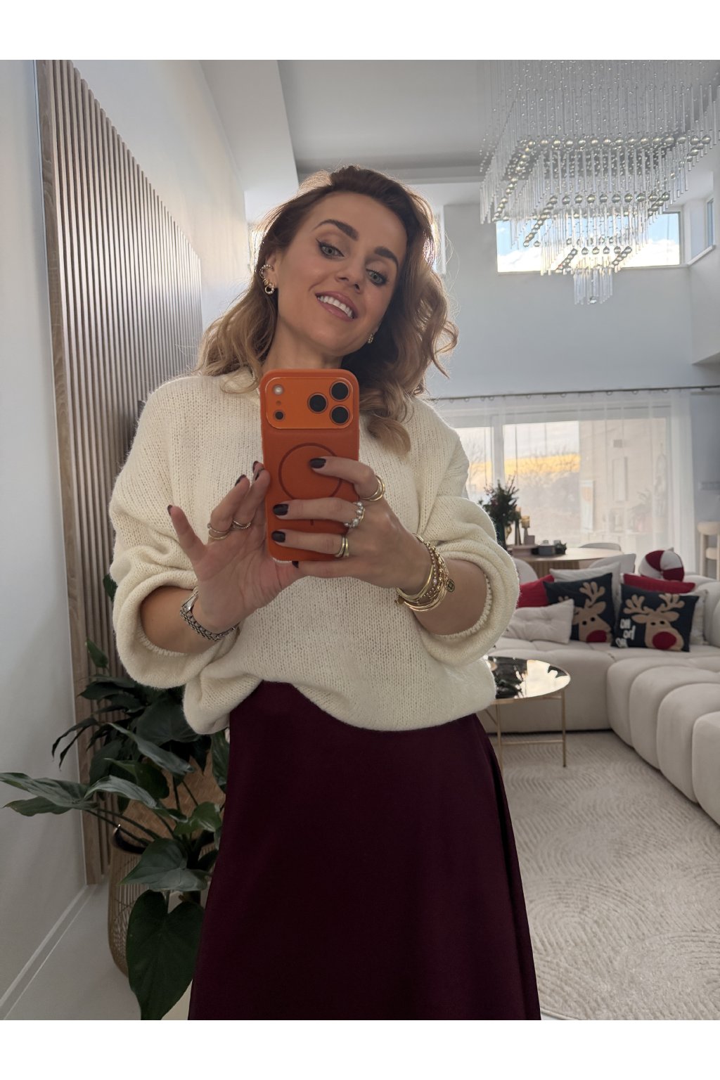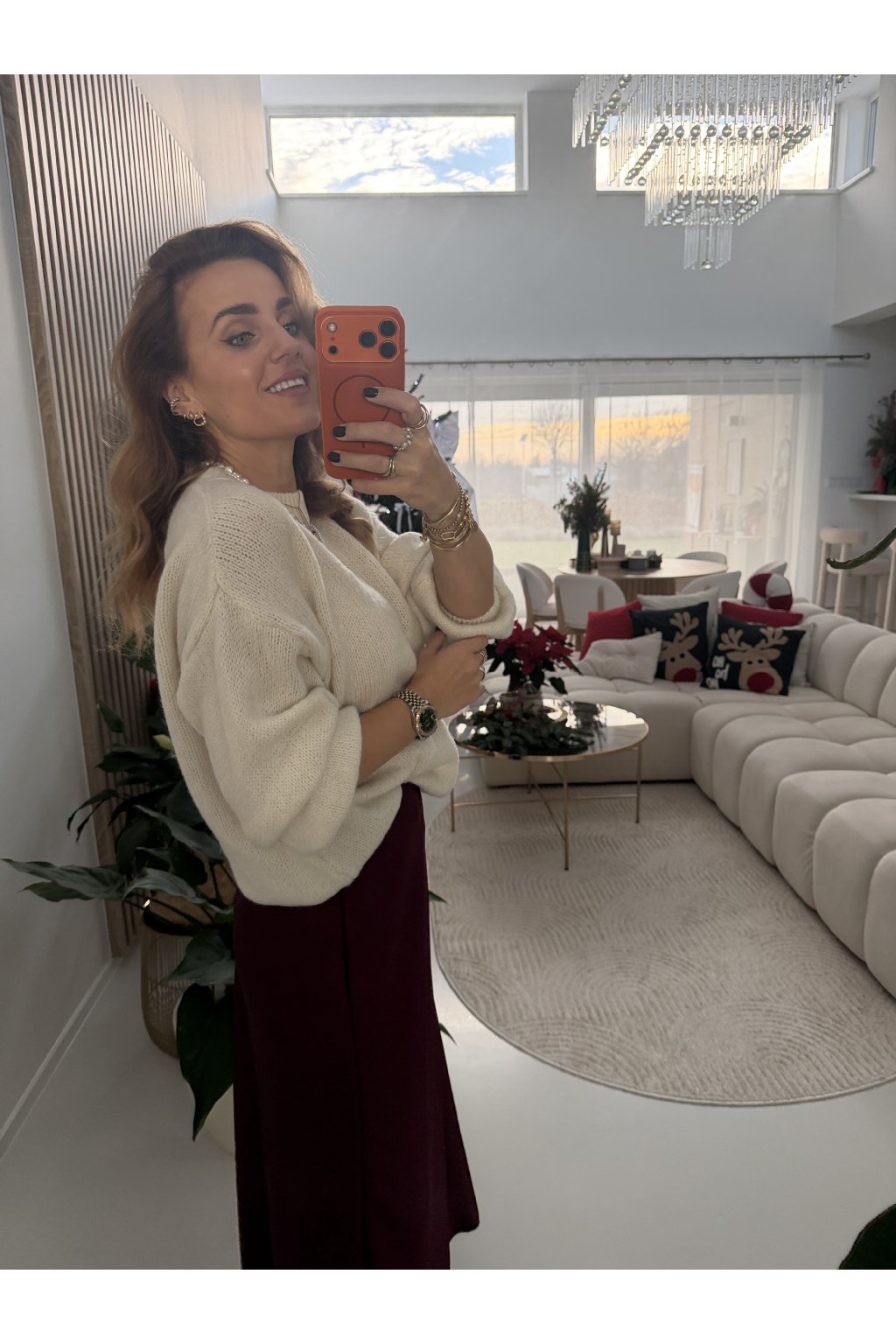 Měkký pletený svetr POPULAR s volnějším, pohodlným střihem, který působí přirozeně elegantně a zároveň ležérně. Příjemný materiál je hebký na dotek, nekouše a krásně se přizpůsobí postavě. Jemná struktura pleteniny dodává svetru nadčasový vzhled a snadno se kombinuje s kalhotami, sukní i šaty. Svetr má balónové rukávy a je ke krku. Sedne od velikosti S až do velikosti L. Pro představu měřím 163cm.