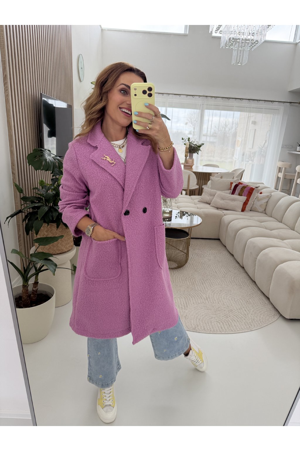 Nadčasový kabátek TEDDY s rovným střihem a elegantním dvouřadým zapínáním, který se skvěle kombinuje ke každodenním i elegantnějším outfitům. Vyrobený z kvalitního materiálu, který se nežmolkuje a drží tvar. Díky promyšlenému střihu sedí od velikosti S až po menší L. Dostupný v trendy jarních barvách, které rozzáří každý šatník. Můžeš nakombinovat s elegantními kalhotami, ale já nejčastěji volím k riflím. Pro představu měřím 163cm a vážím 59kg.