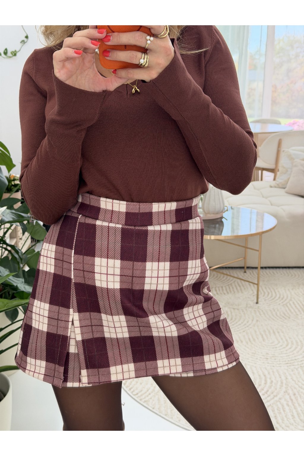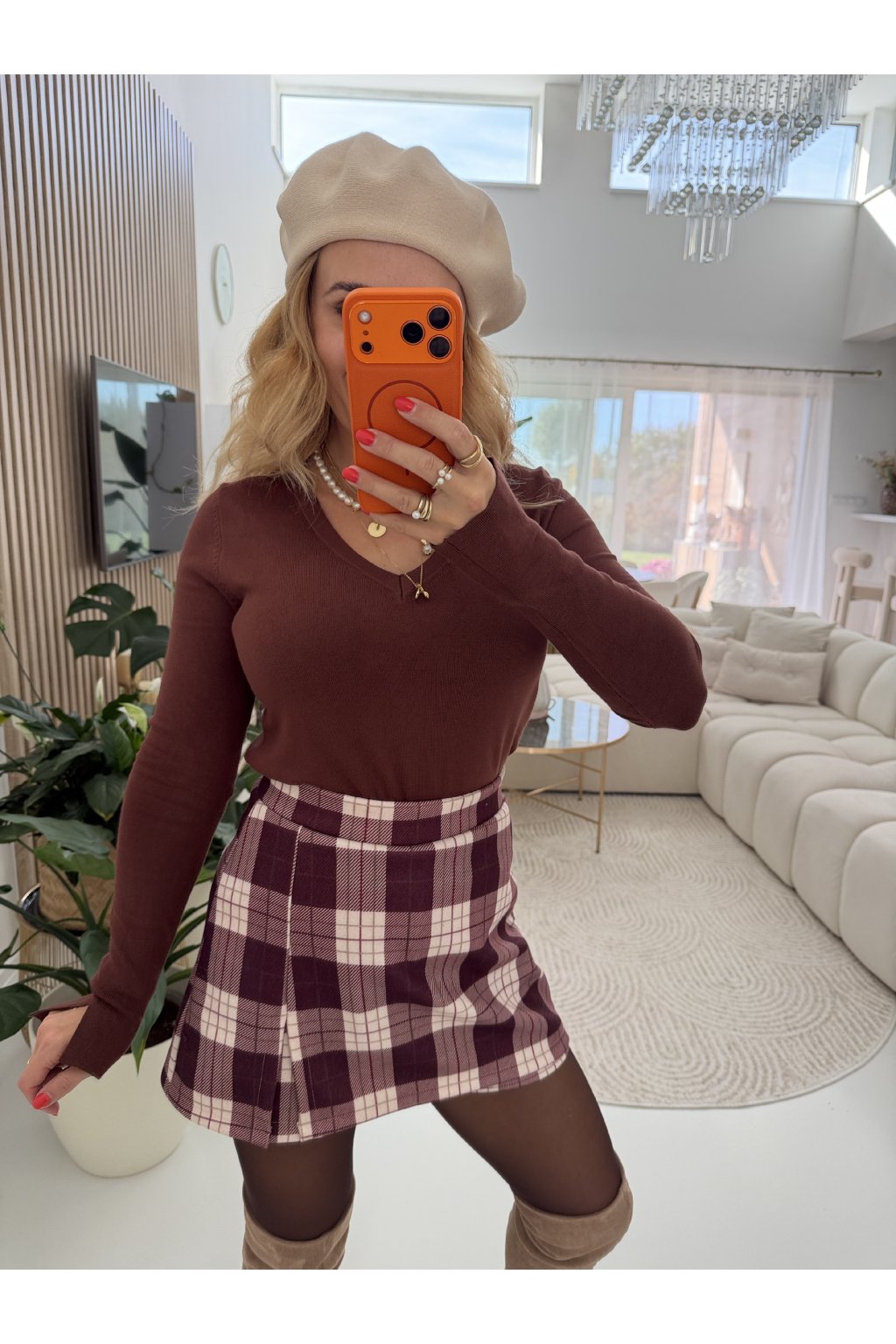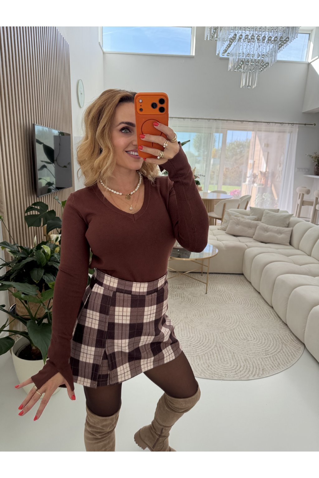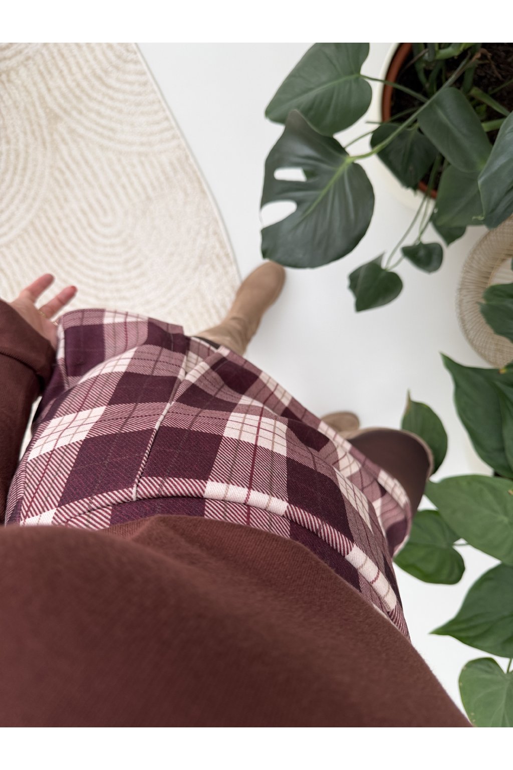 🤎 Kostkovaná kraťasová sukně – stylový a zároveň pohodlný kousek, který působí jako sukně, ale má uvnitř všité kraťásky.