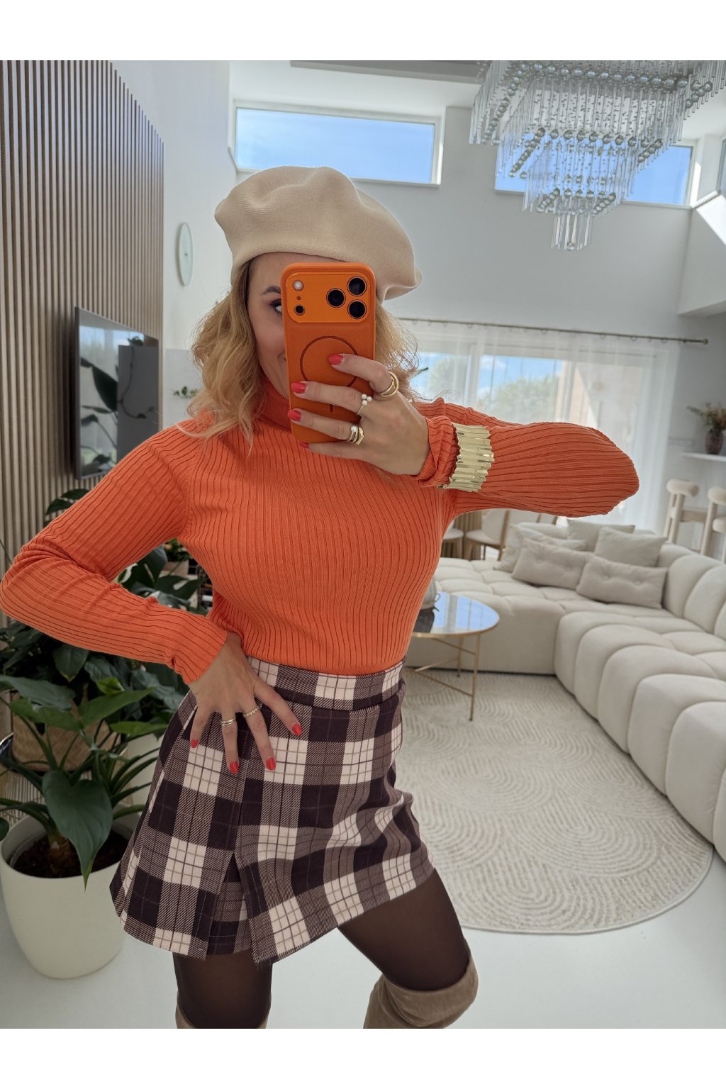 Zapíná se vzadu na zip, takže krásně sedí v pase a drží tvar. Skvěle se hodí k rolákům, svetříkům i kozačkám – ideální volba pro podzimní outfity