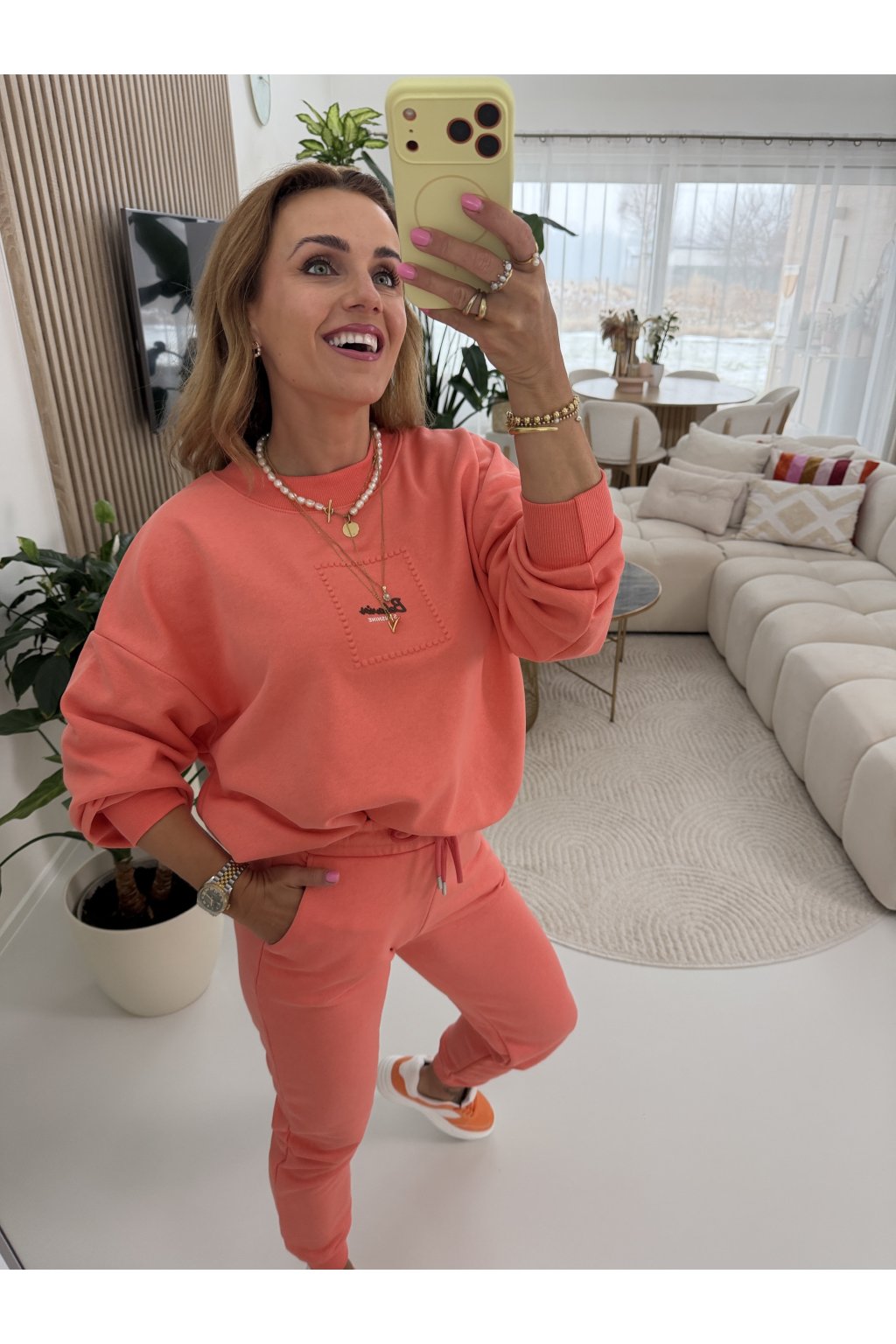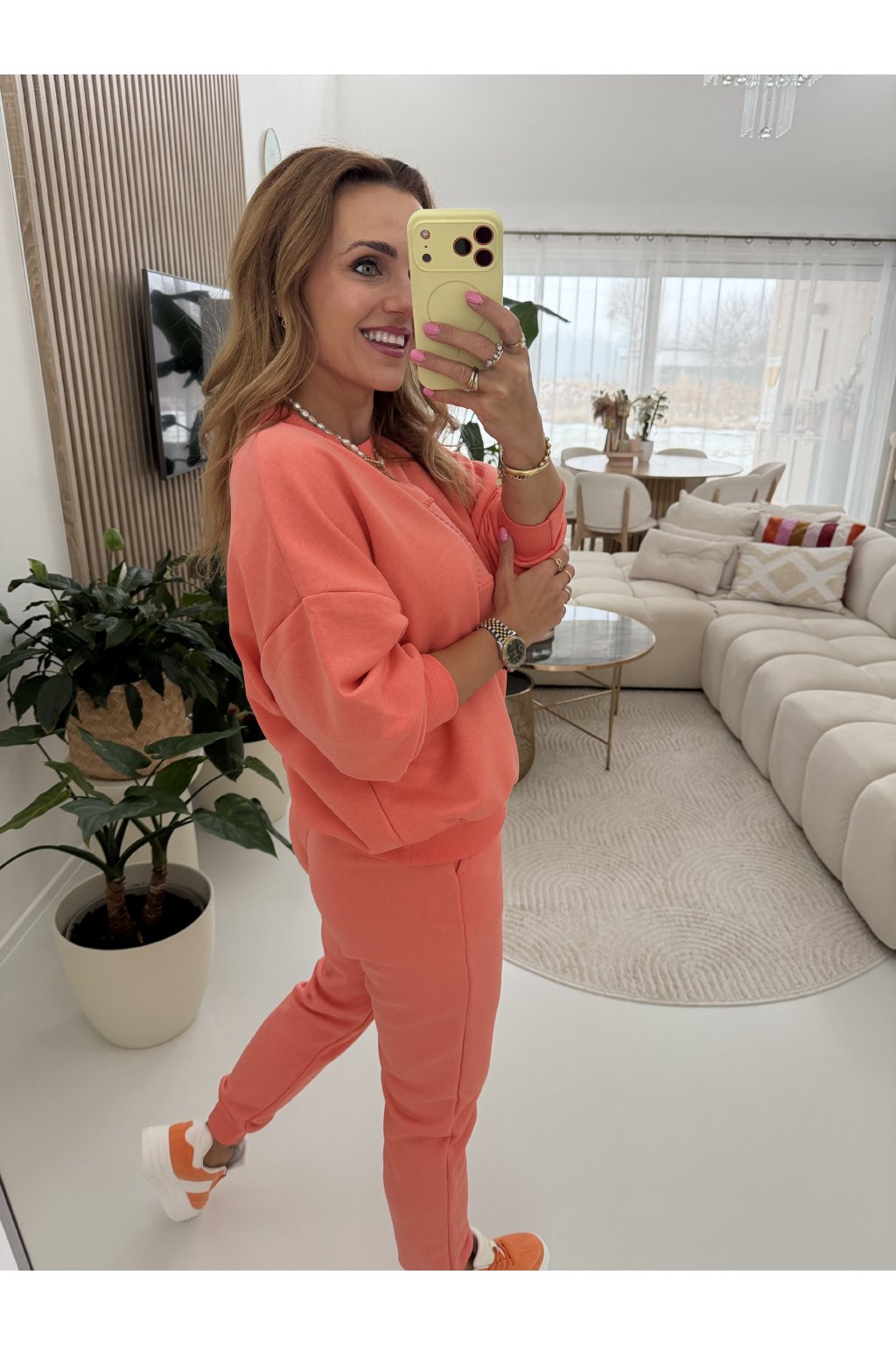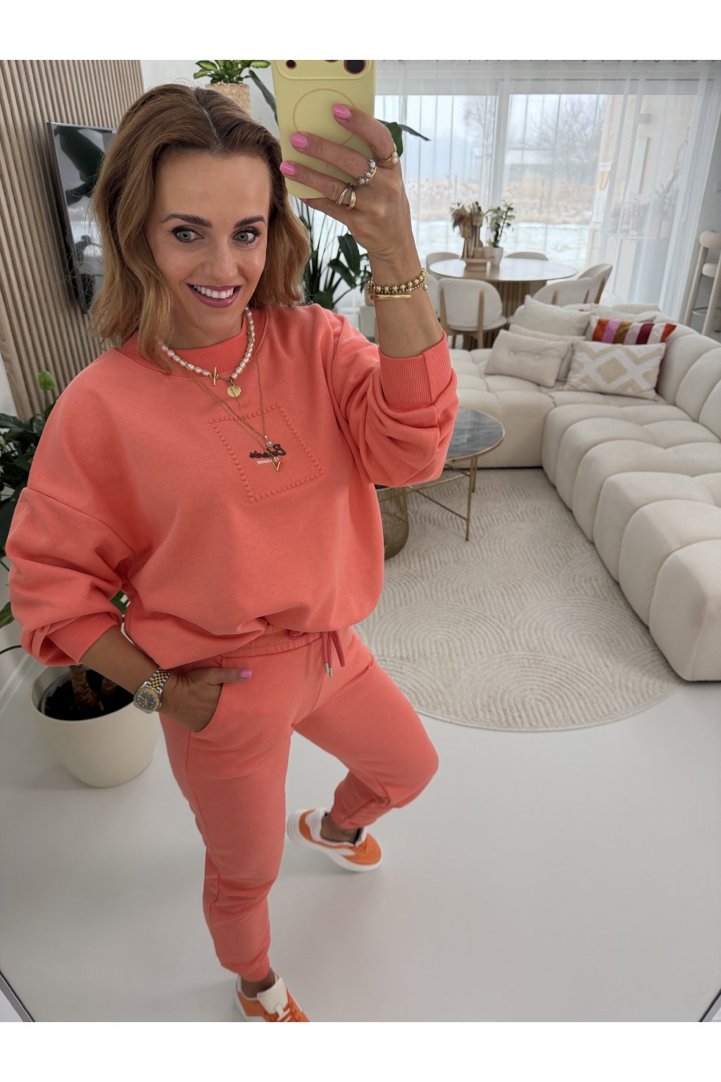 Nadčasová zateplená tepláková souprava BEHAVIOR SUNSHINE v jemných, elegantních odstínech, která spojuje maximální pohodlí s čistým moderním designem. Vyrobena z bavlněného materiálu, který je pevný, hebký na dotek a perfektně drží tvar i při celodenním nošení.