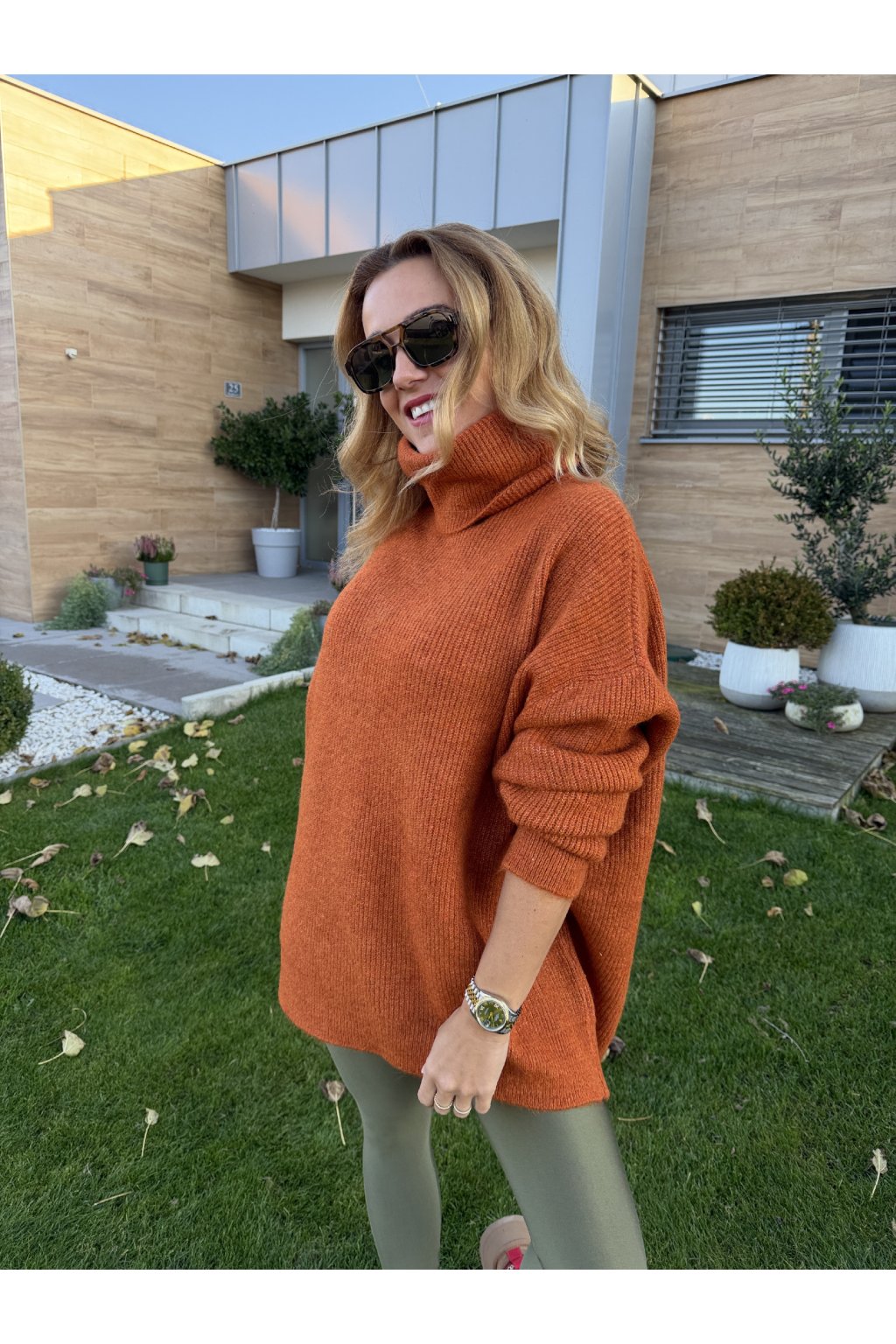 Zamilujte se do ležérní elegance! Tento měkoučký oversize svetr s rolákem je ideální volbou pro chladné dny – zahřeje, ale přitom vypadá stylově. Snadno ho zkombinujete s džínami, legínami i elegantními kalhotami. Sedne od S až do menší velikosti XL.
