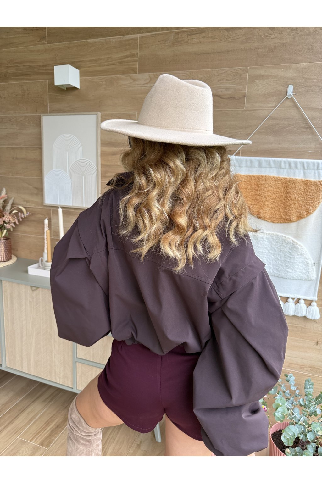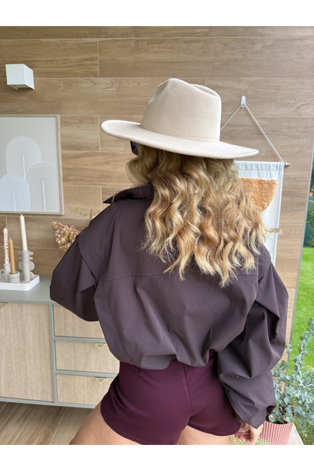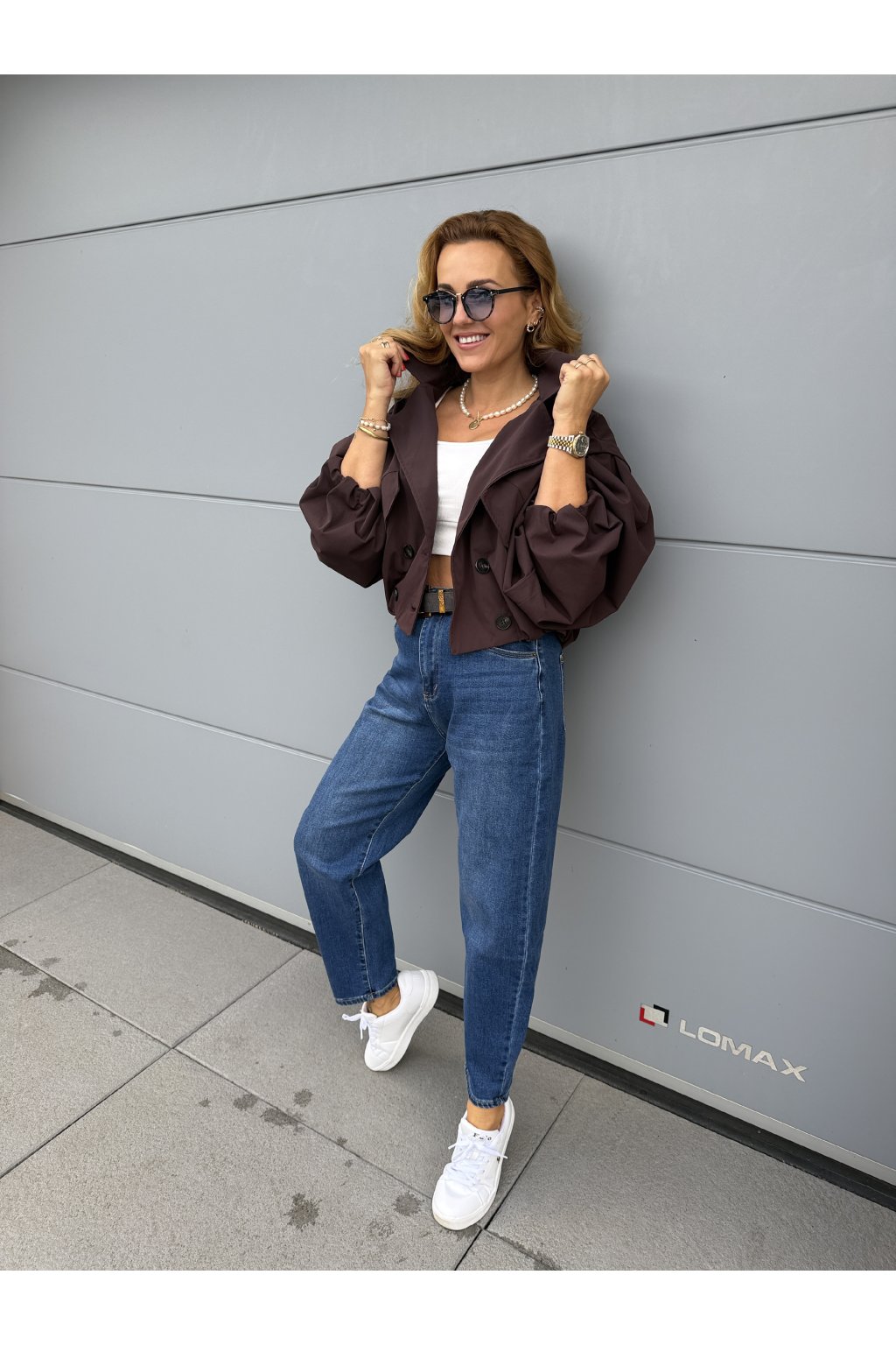 Krátký trenčkot PARIS. Zapíná se na knoflíky. Má balónové rukávy. Kolem zápěstí je pevná manžeta, ta se opakuje i kolem pasu, neprofoukne. Velikost je Onesize. Sedne od S až do menší velikosti XL. Vypadá dobře k riflím i k elegantním kalhotám.