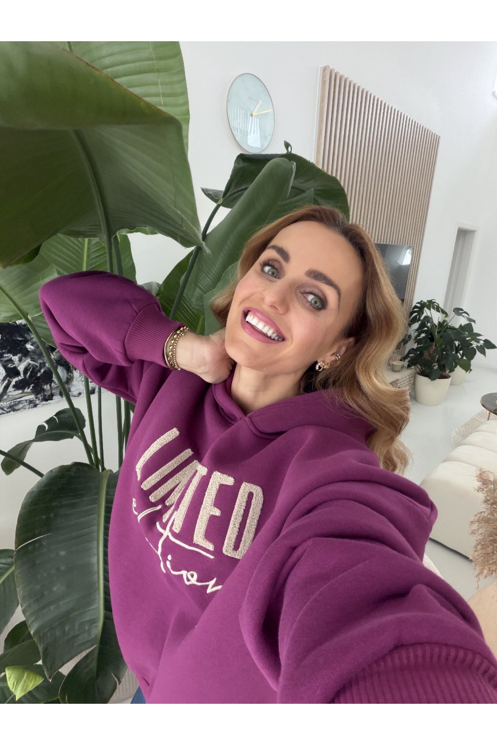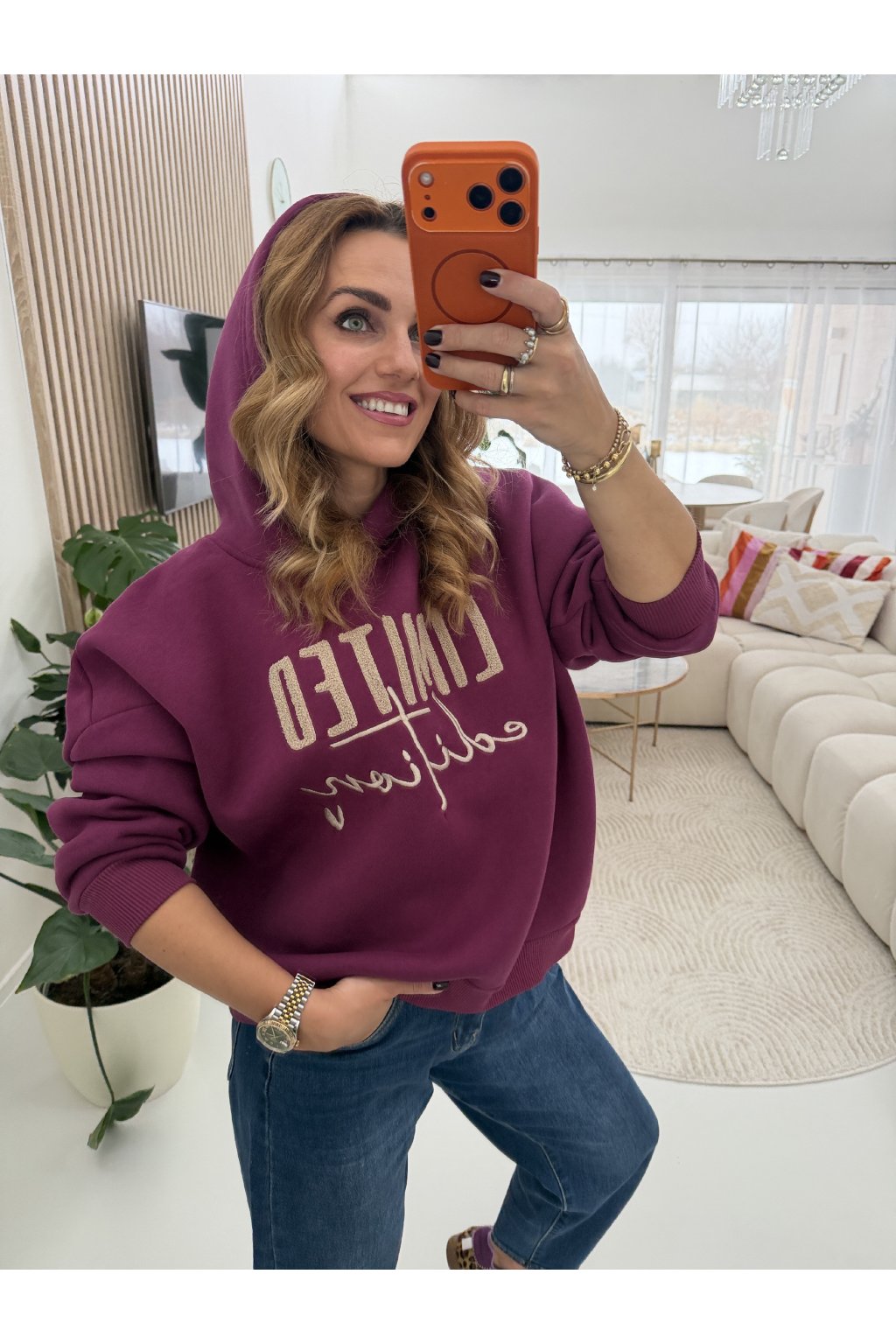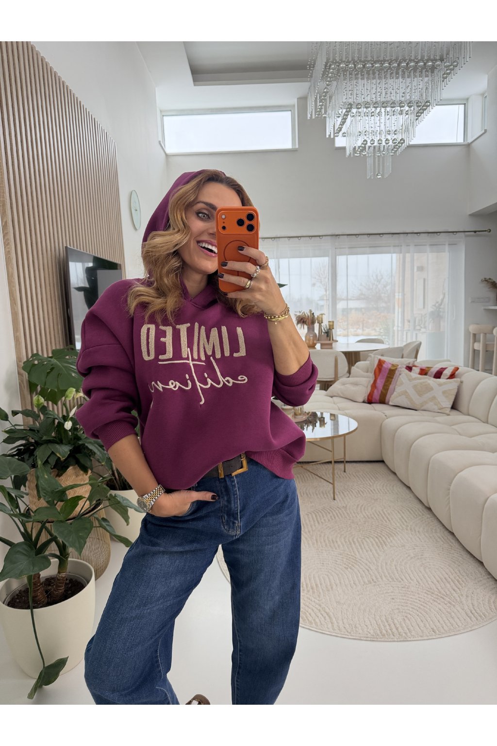 Zateplená mikina LIMITED EDITION v oversize střihu. Má kapuci, vevnitř je zateplená mikroplyšem a je dvě dvou barvách. V hlubokém čokoládově hnědém odstínu, který působí elegantně a nadčasově a v syté švestkové barvě. To je hřejivý tón ideální pro chladnější dny. Mikina sedne díky střihu od S až do menší velikosti L.