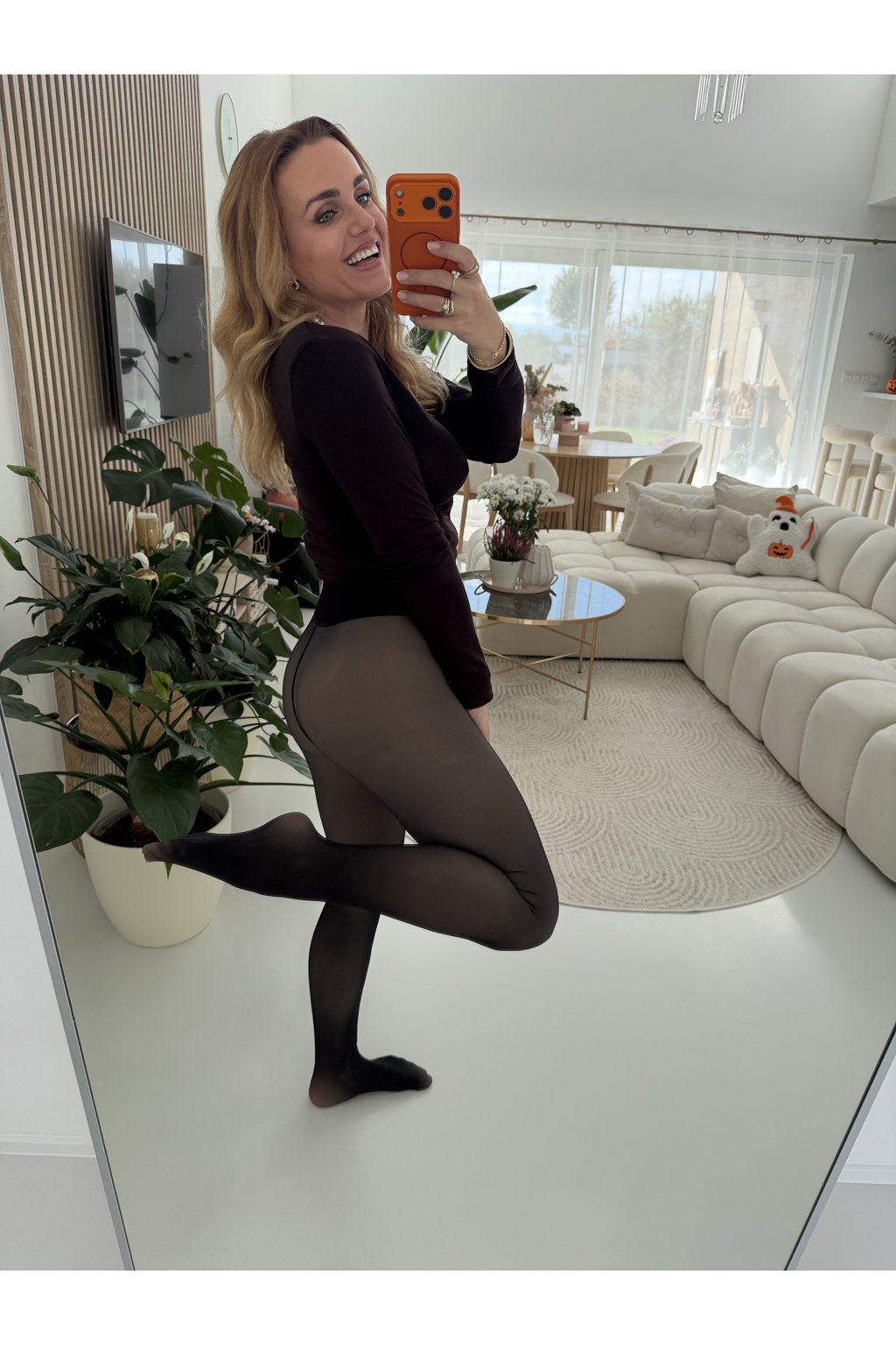Jsou poddajné, neprůsvitné a pružné, takže se krásně přizpůsobí postavě. Ideální pod šaty, sukně nebo dlouhé svetry. Na sobě mám velikost S/M. Pro představou měřím 163cm a vážím 60kg.